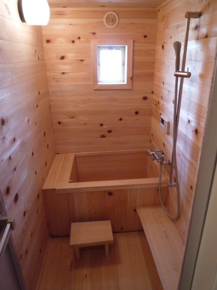 ●排水は全部お風呂の下に流れます。全部。檜風呂 ユニットバスのスペースしかないので、小さいといえば小さいのです。