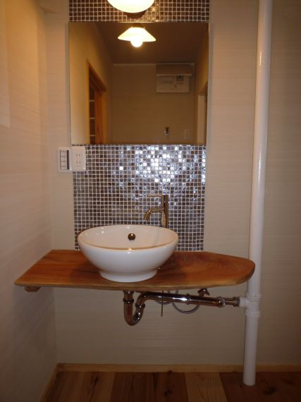 ●欄間(ランマ)板の特徴を活かし らんまに使いました。これもいぶきの板です